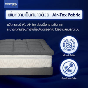 นวัตกรรมผ้าหุ้ม Air-Tex ช่วยเพิ่มความเย็น และระบายความร้อนภายในท็อปเปอร์ออกไปได้อย่างสมบูรณ์แบบ พร้อมป้องกันไรฝุ่น และแบคทีเรียได้อย่างมีประสิทธิภาพ