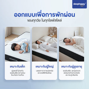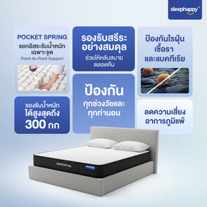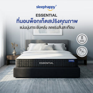 SleepHappy ที่นอนพ็อกเก็ตสปริงคุณภาพ รุ่น Essential หนา 8 นิ้ว สัมผัสแน่นนุ่ม รองรับสรีระ ลดแรงสั่นสะเทือน ไม่ยุบง่าย ไม่เด้งเกินไป เหมาะกับทุกการนอน