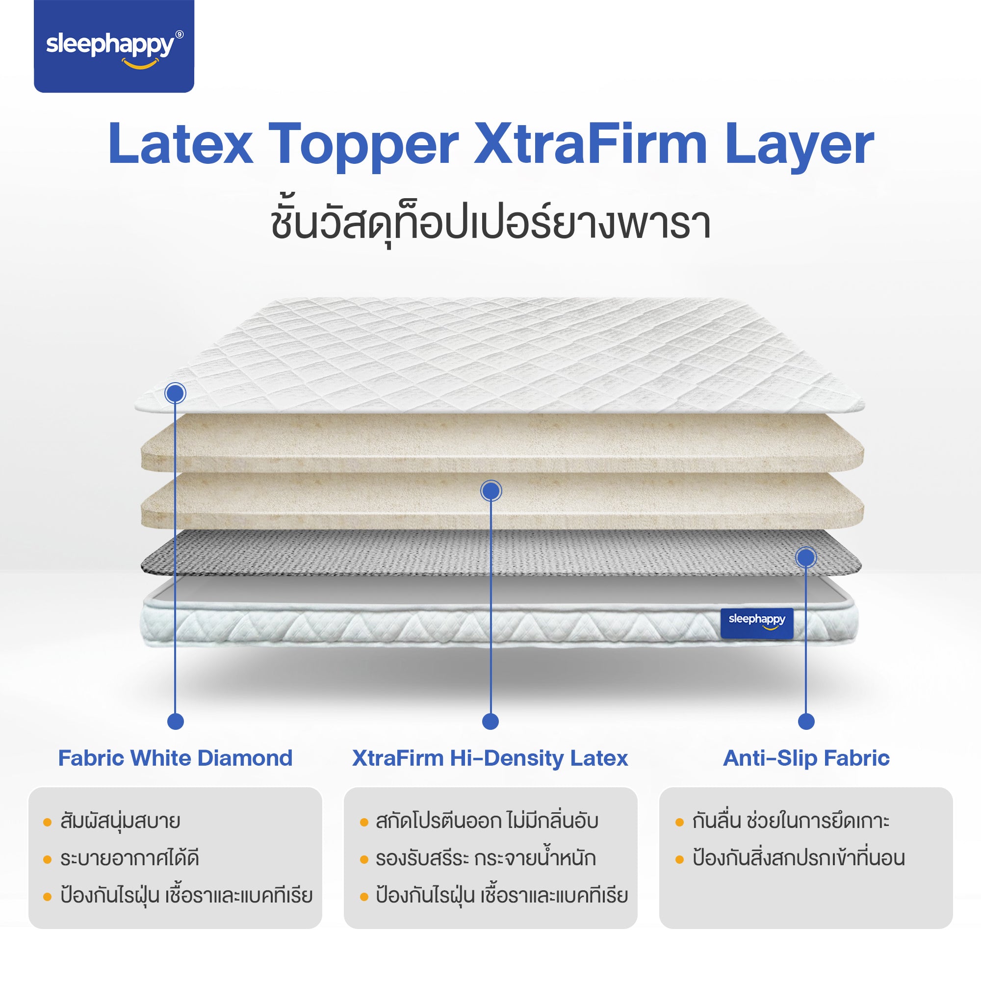 XtraFirm Latex Topper ท็อปเปอร์ยางพาราแท้ รุ่นแน่นพิเศษ ยกระดับความแน่นให้ที่นอนหลังโปรด ลดการปวดหลัง ผ้าหุ้มนุ่มนวลมาตรฐานที่นอนโรงแรม 5 ดาว