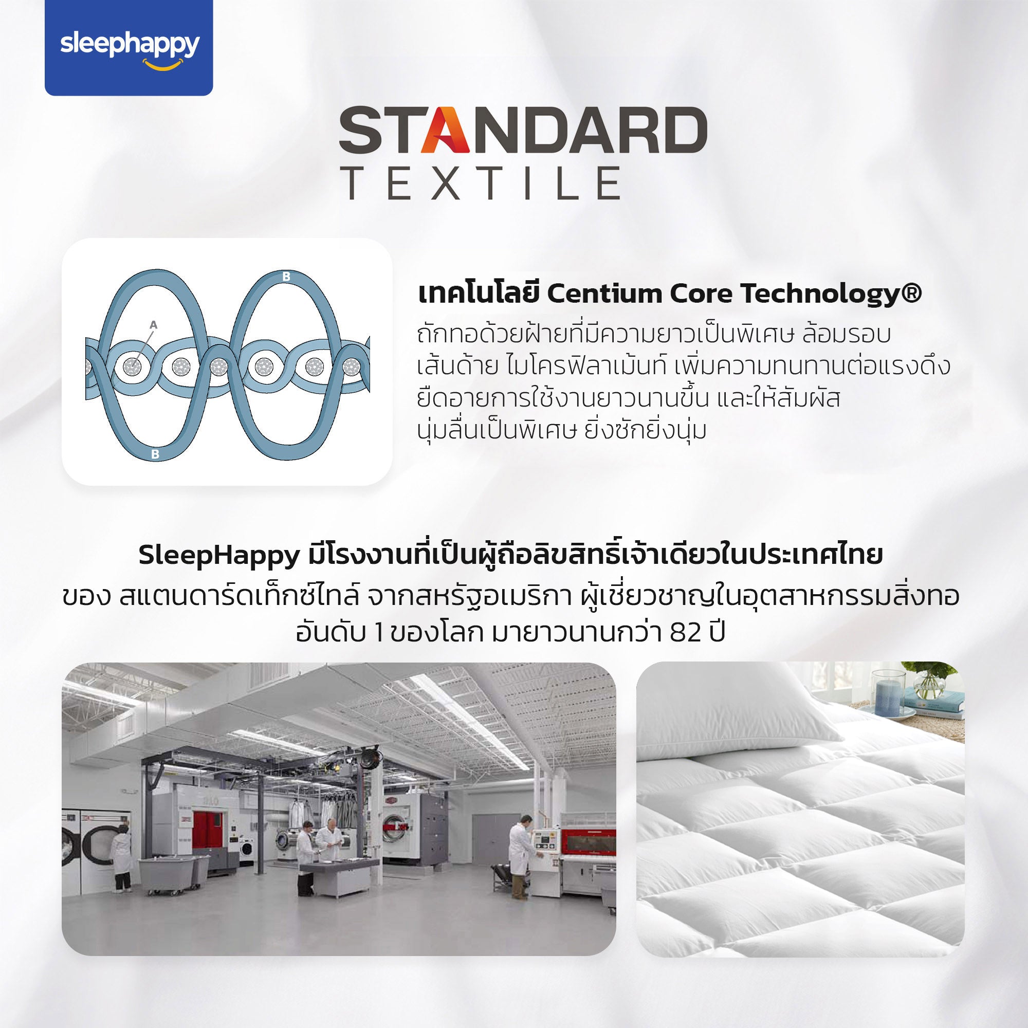ความหนาพิเศษถึง 450 gsm (กรัมต่อตารางเมตร) ระบายอากาศได้ดี ไม่ร้อน พร้อม สัมผัสเนียมนุ่มแบบพิเศษ นอนสบายผิว เทียบเท่าที่นอน Hotel Collection นำเข้าโดยตรงจาก Standard Textile USA มาตรฐานระดับโลก ซึ่งเป็นมาตรฐานระดับเวิลด์คลาสที่โรงแรม 5 ดาวทั่วโลกยอมรับ