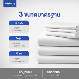 ▶ ผ้าปูที่นอน 1 ชิ้น (ขนาด 60” x 78” x 10" น้ำหนัก 300 กรัม) สามารถใช้กับที่นอนความหนา ไม่เกิน 12 นิ้ว